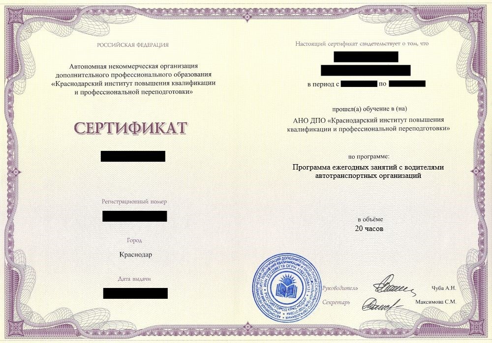 • Сертификат (при отсутствии среднего профессионального или высшего образования)