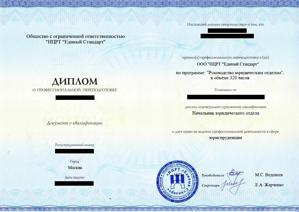 - Диплом о профессиональной переподготовке установленного образца. Срок действия: бессрочно