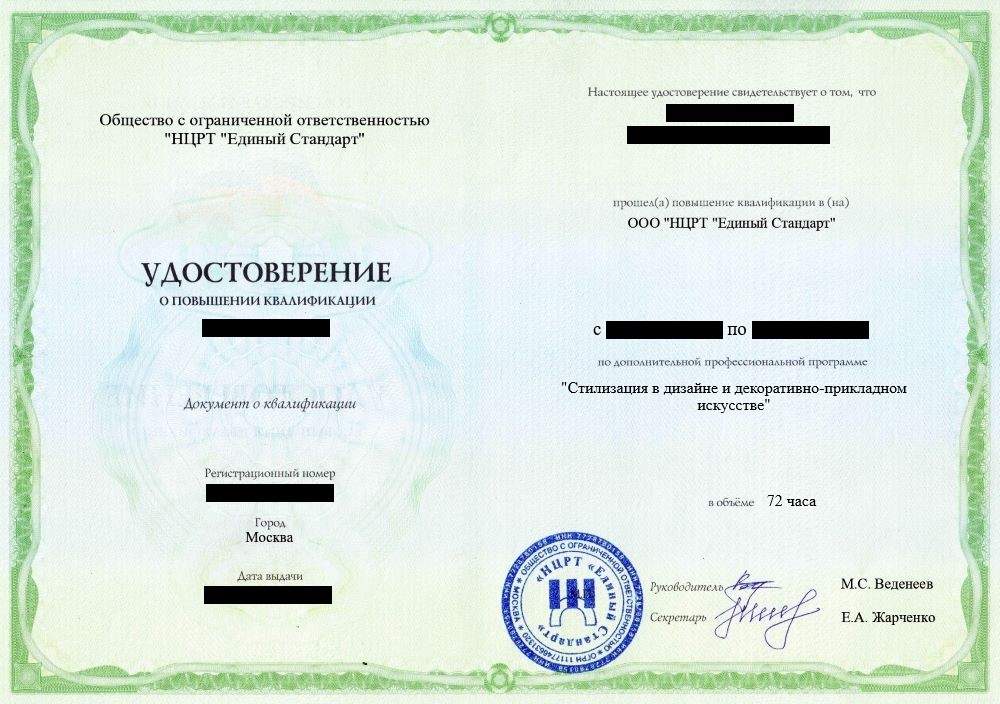 • Удостоверение о повышении квалификации установленного образца. Срок действия: 5 лет